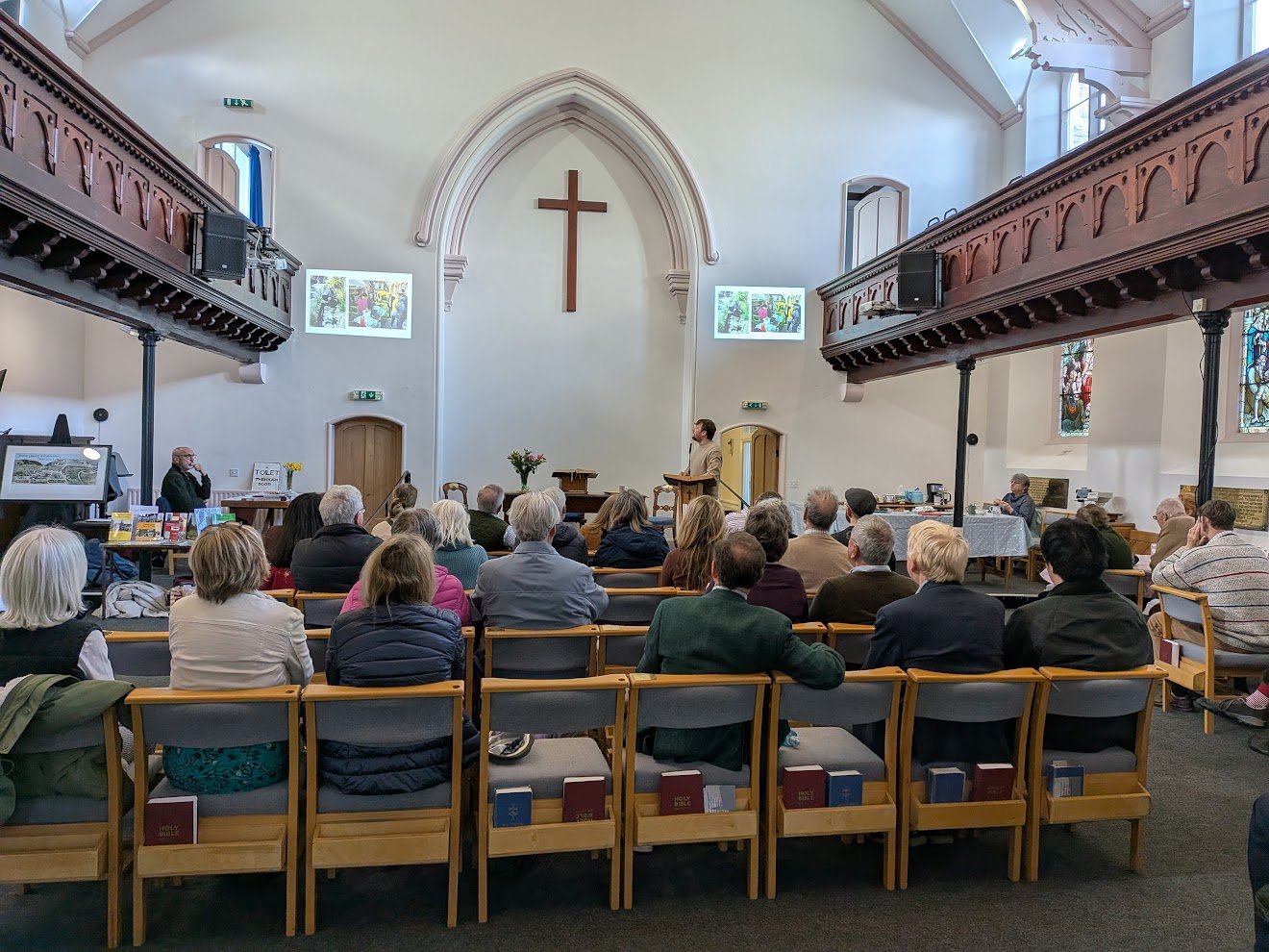 Two talks were held, the first explained how Thomas's life and local 'politics' at that time in Malmesbury may have influenced in his thinking. This was given by local historian and author, Tony McAleavy and held in the Old Bell Hotel Malmesbury. The second talk was an analysis of the archaeological dig on the site of his family home in the garden of the URC, where Thomas was born in 1588. This was given by Liam Wilson, archaeologist and was accompanied by a display of the finds overseen by Ed MCSloy, a finds expert. both of Cotswold Archaeology.