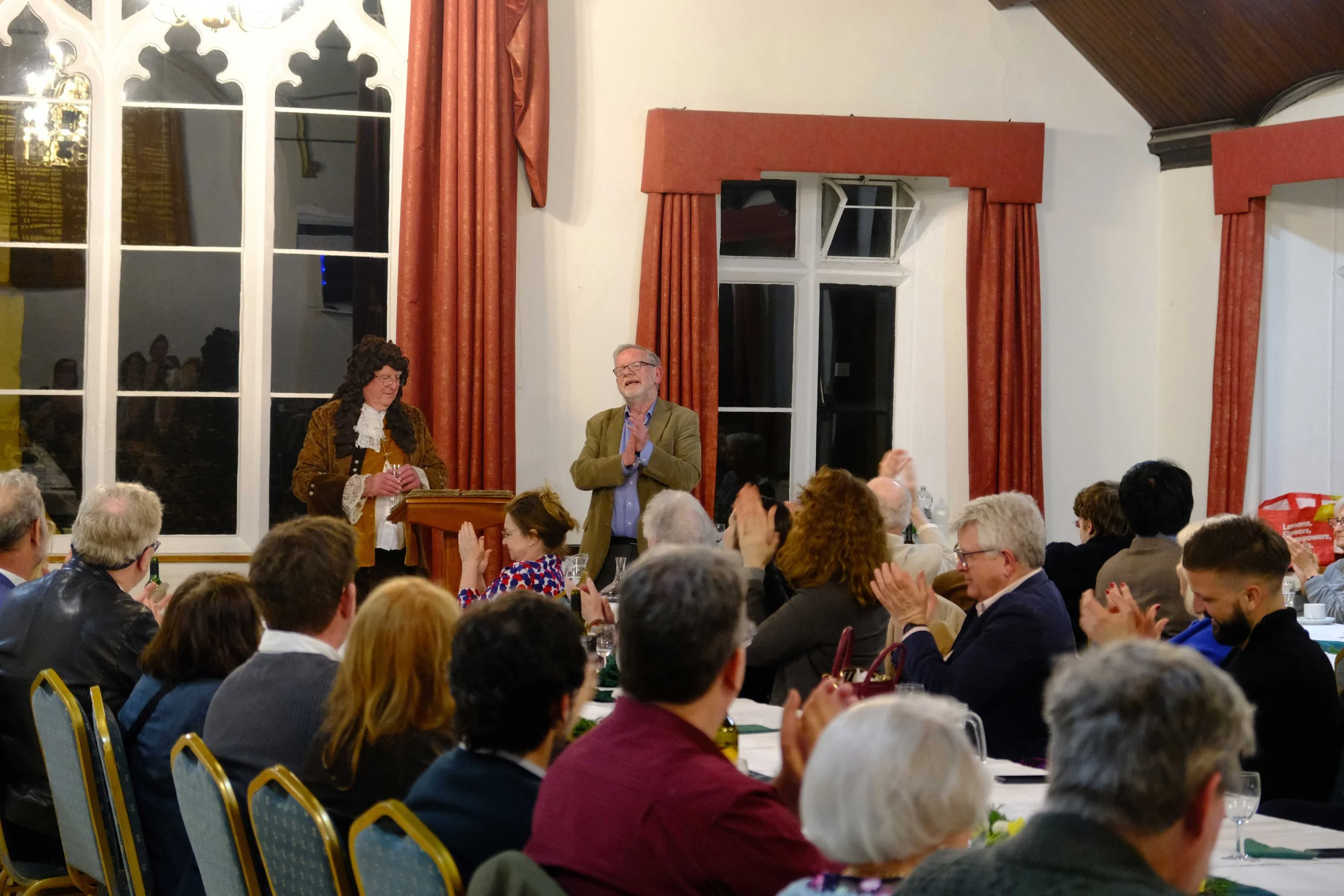 A dinner on Saturday Night was for our visiting academics and local people. It was attended by the Mayor of Malmesbury, Cllr. Stephen James. The food was delicious and the company was great! To round off the evening, we enjoyed an after dinner performance by John O'Brien as 'John Aubrey' visiting from 400 years ago to tell us about his friend Thomas Hobbes. This was also with Tony McAleavy and was the highlight of the evening.